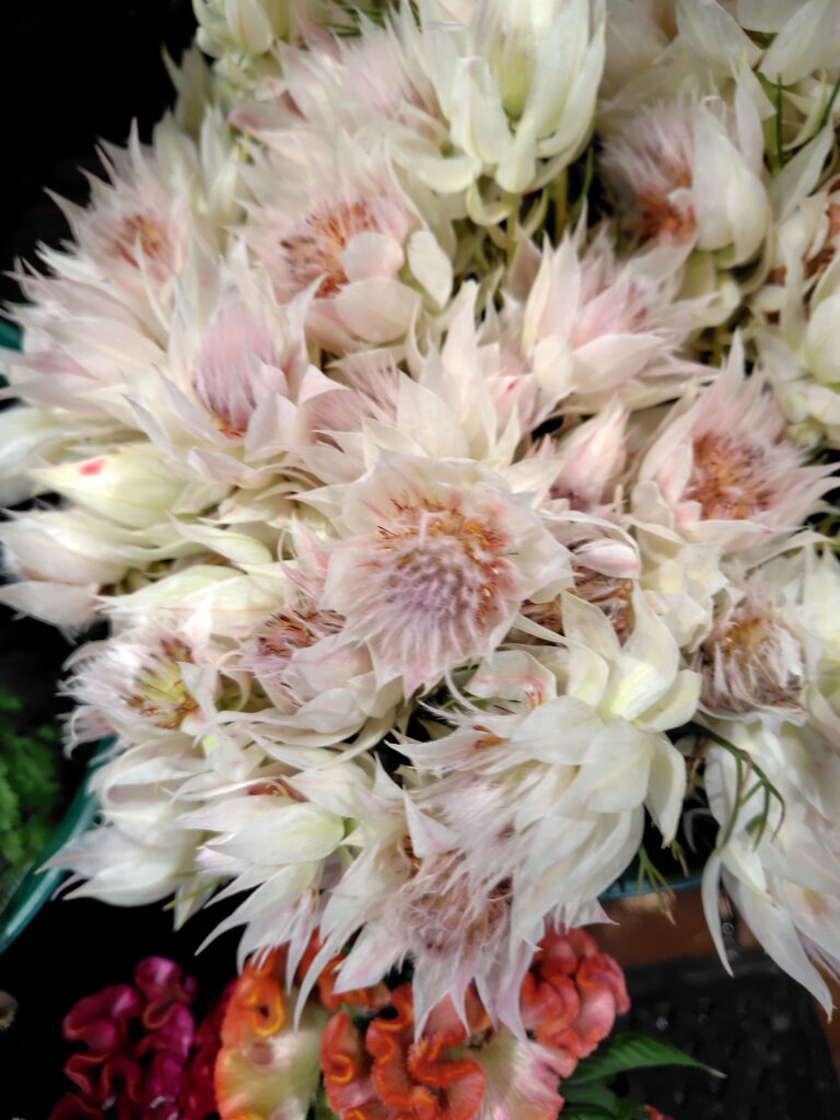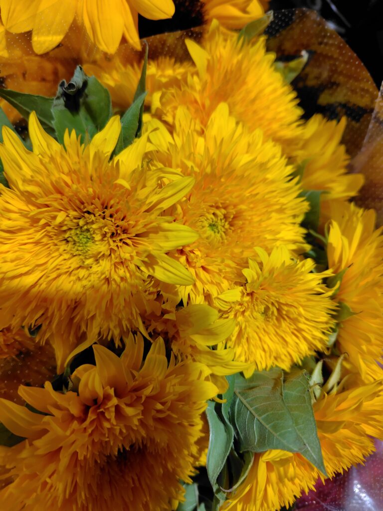 🌸バラ・スプレーバラ・トルコ桔梗・ダリア・ガーベラ・カーネーションなど、定番の美しさを誇る花々はもちろん、 🍂シュウメイギク・フジバカマ・リンドウ・弁慶草・ケイトウなど、秋ならではの趣を感じる草花も揃いました。 🌻ひまわりも、夏の名残を感じさせる明るい表情で、まだまだ元気に咲いています。