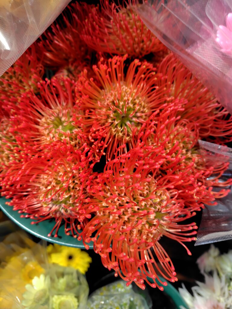 さらに、スプレーデルフィー・ピンポン菊・ヒペリカム・ピンクッション・クルクマ・ブルースター・マドリカリアなど、個性豊かな花材も多数入荷。アレンジメントや花束に、季節感と遊び心を添えてくれます。