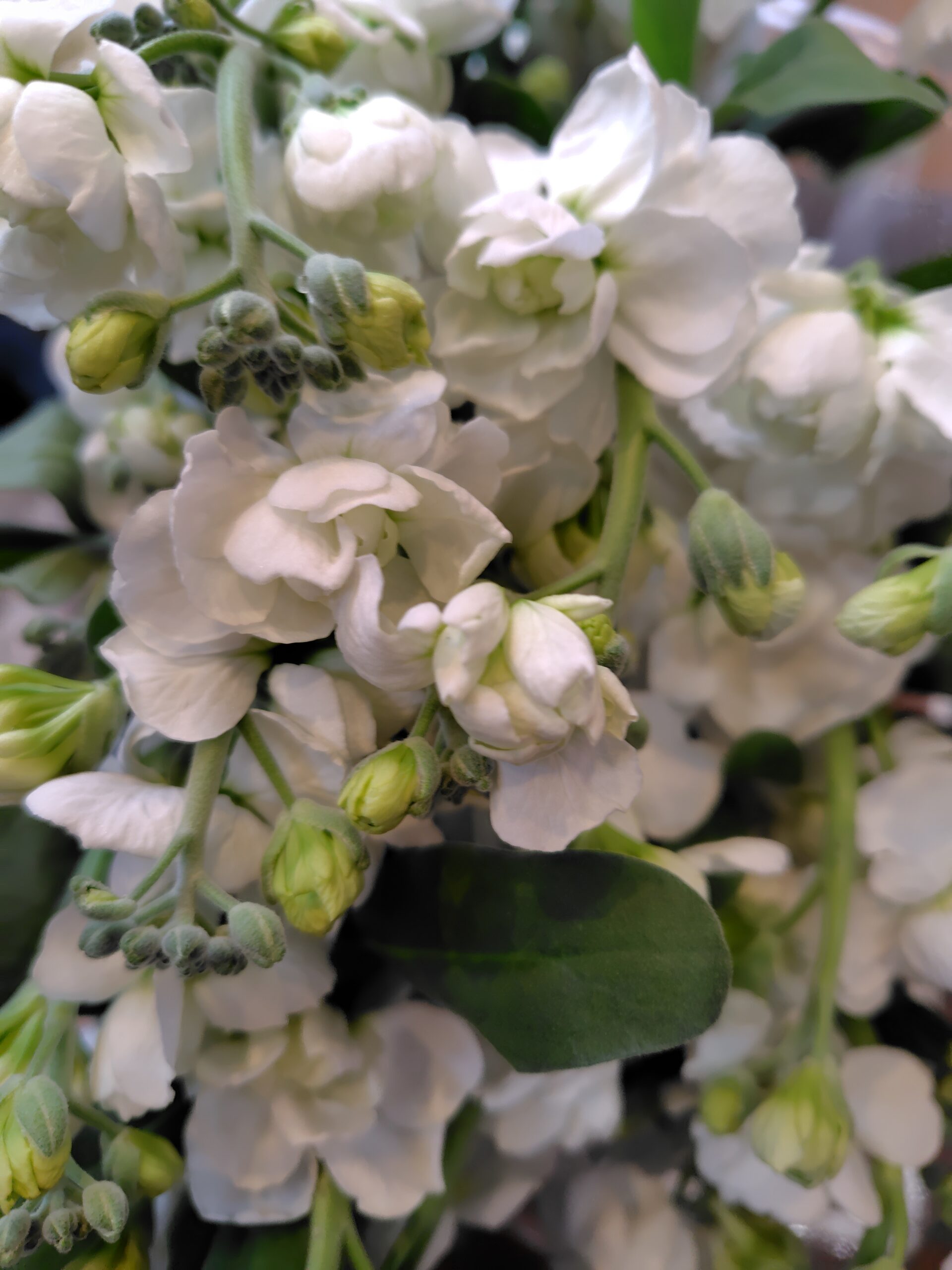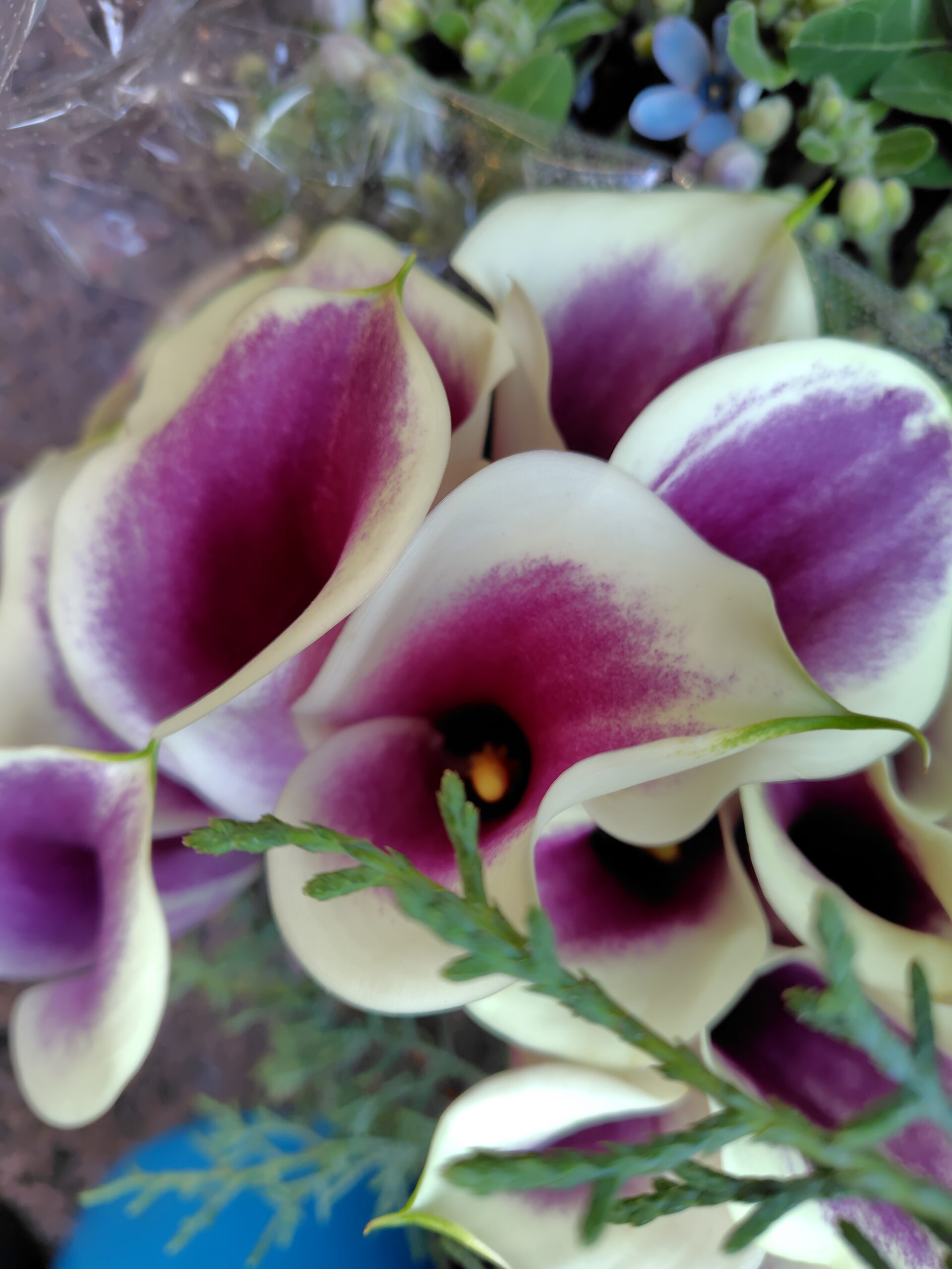 • ユーカリやブルースターは、爽やかな香りと色合いで冬の空気にぴったり。