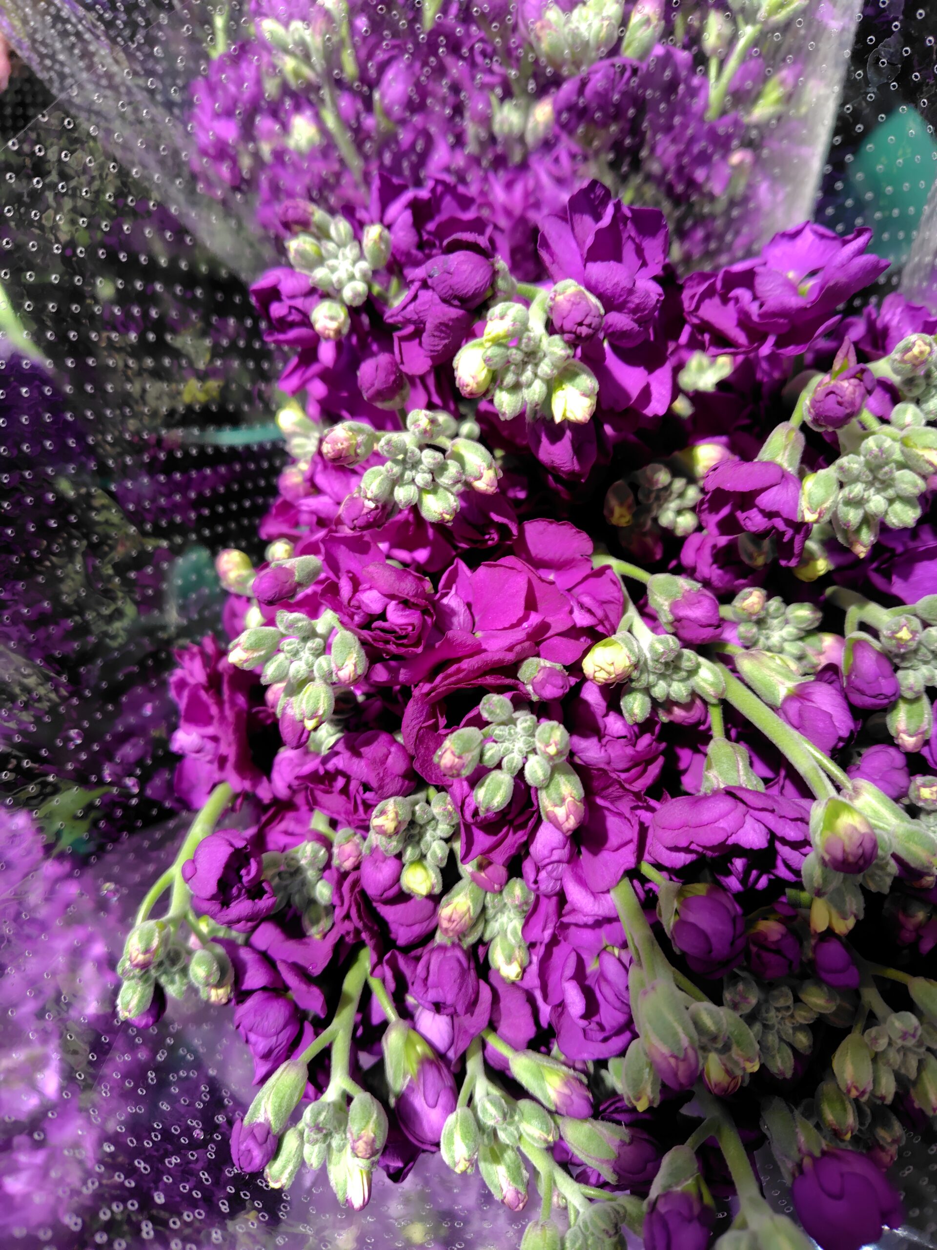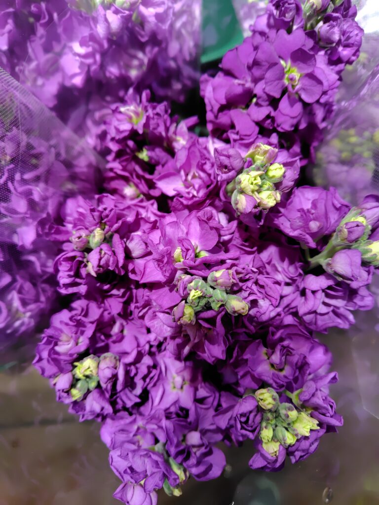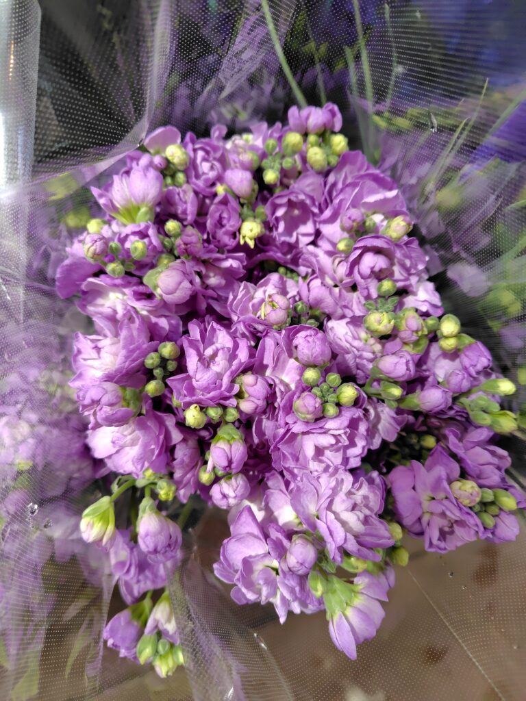 • スプレーデルフィー & ストック 爽やかなブルーのデルフィと、香り豊かなストック。春のアレンジにぴったり。